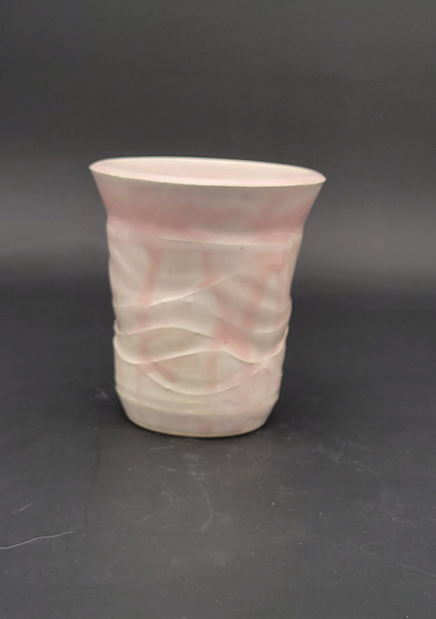 Medium handmade cup great for cold beverages. Each piece has a unique wave pattern on the exterior, and hold between 10oz-12oz. If you're looking for a specific size please message me, and I will see if I have the correct size in stock. The bottoms of the cups are water buffed with diamond pads to ensure a clean smooth finish.